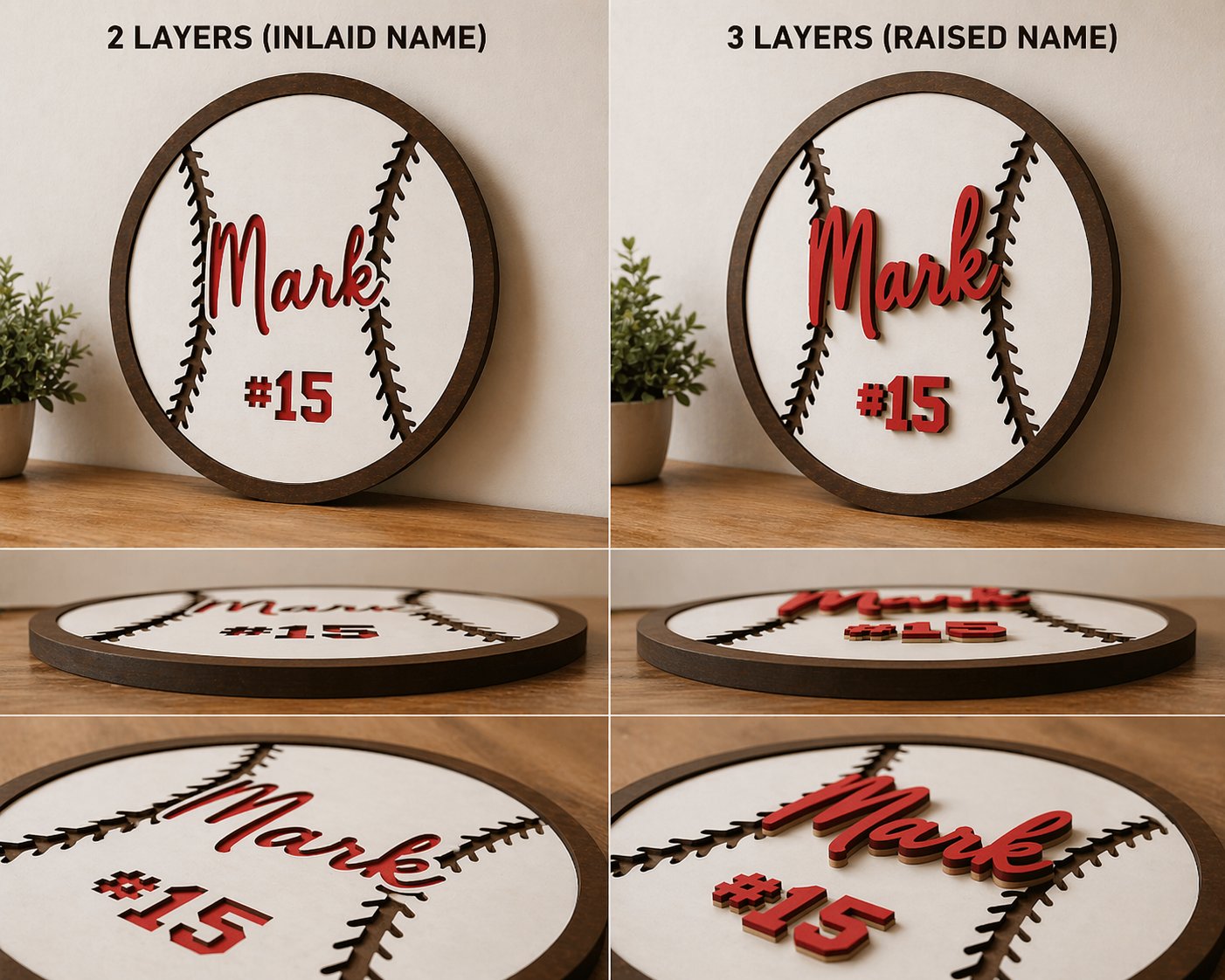 – 2 Layers (Name & number inlaid – smooth finish)